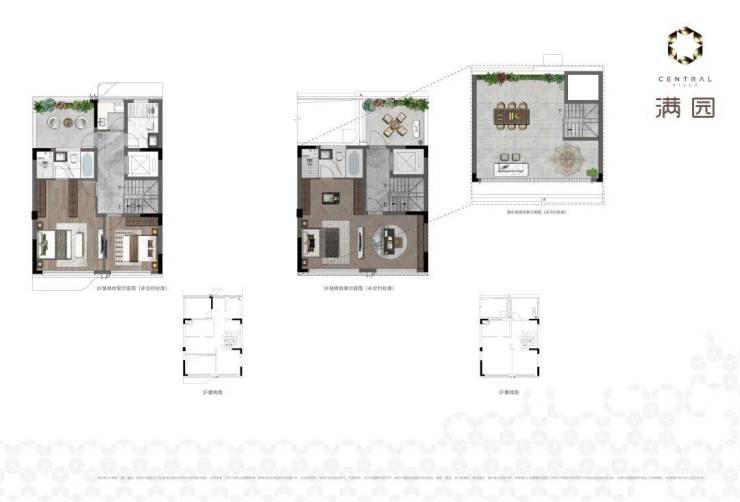 旭辉满园为容积率1.05的纯墅区,由10幢3F联排,5幢6F叠加组成,仅约102套房源,属于主城十分罕见的纯别墅盘。