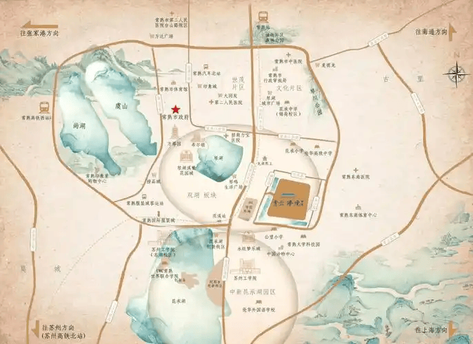 项目毗邻昆承湖、琴湖两大城市湖泊,周边3公里范围内还有4个公园,距离最近的公园仅852米^。昆承湖作为常熟的城市绿肺,拥有广阔的湖面和优美的湖滨风光,是休闲散步、骑行健身的好去处;琴湖公园则以江南园林为特色,亭台楼阁、小桥流水,充满了诗意与韵味^。茶余饭后,带着家人在湖边漫步,或是在公园里享受阳光,都能让身心得到放松,实现人与自然的和谐共生。