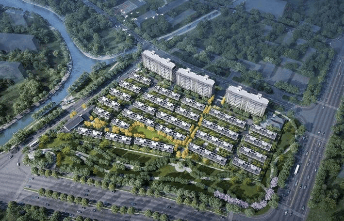 产品类型:25幢联排别墅(3层)和3幢10层科技洋房,容积率仅1.01,总户数236户