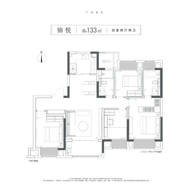 建面约133㎡,四室两厅两卫