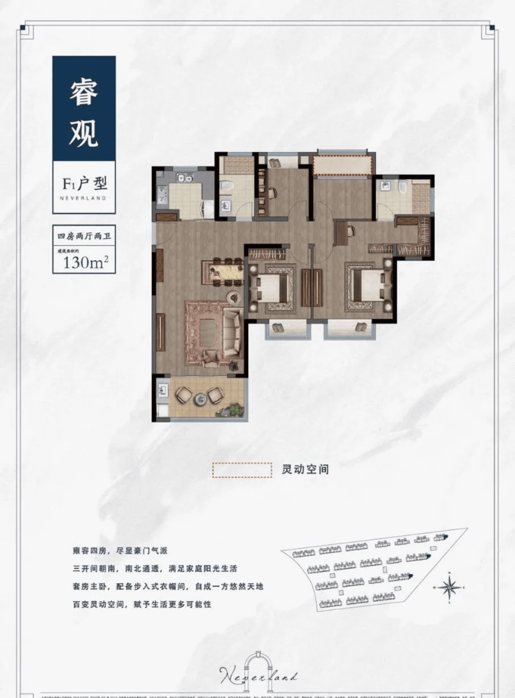 场、网球场、小型足球场),4个景观组团(浪漫樱花、绕花千回、十里芳华、浮云