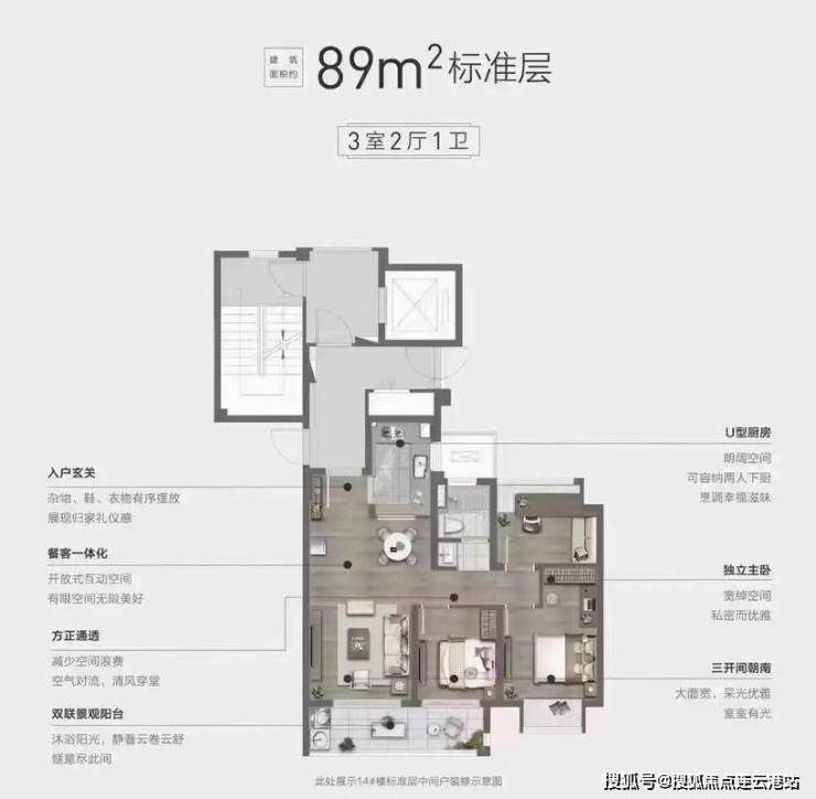 89㎡三居:单价约13500-14500元/㎡,总价119-130万/套(三开间朝南+双联阳台)