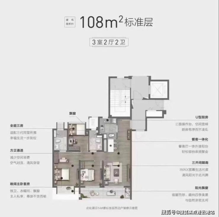 108㎡三居:单价约14500-15500元/㎡,总价155-165万/套(动静分离设计)