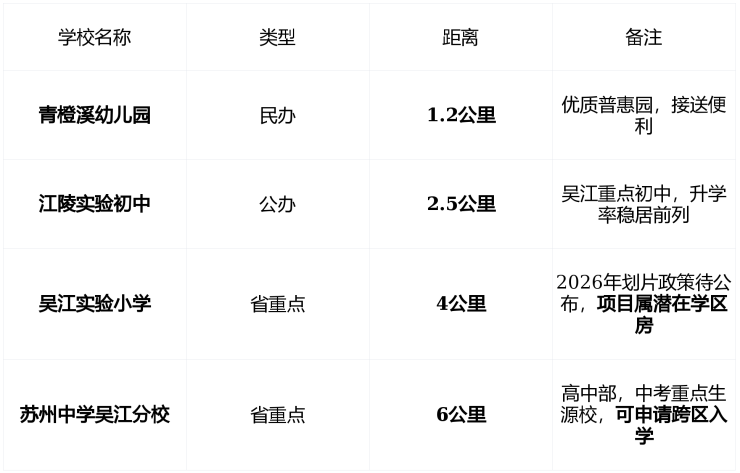 ✅ 无明确对口小学,但 吴江区对优质住宅项目有“教育协调机制”, 开发商已与教育局建立沟通通道, 2026年入学政策有望倾斜。