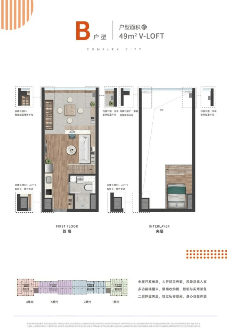 1大居住空间,建面约29-51㎡精装平层LOFT
