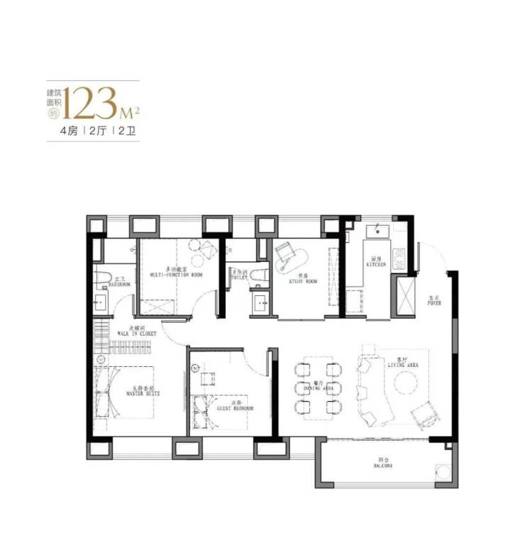 最大优势 : 得房率高达79–81% ,精装配置一线品牌(科勒卫浴、方太厨电、圣象地板),同价位改善盘中性价比突出。