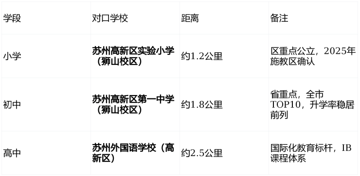 ✅ 学区稳定 :2025年高新区义务教育施教区文件已明确, 单校划片,无摇号风险 ,入学确定性强。