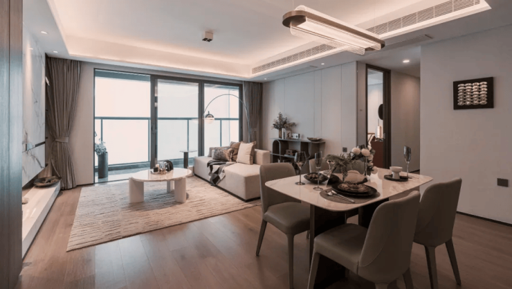 交付标准:预计2025 年 12 月交付,目前部分楼栋已封顶,处于准现房状态。精装交付标配中央空调、地暖、新风系统“三大件”,采用环保材料,注重居住健康。