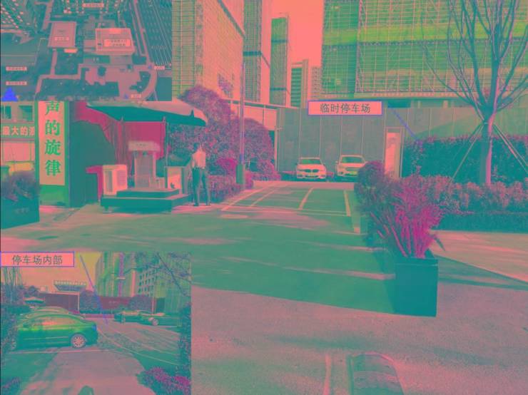 从外面的路边无法看到停车场内的车辆,都被绿化巧妙遮挡,具有良好的隐蔽性。