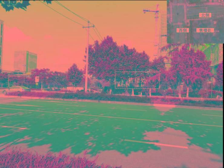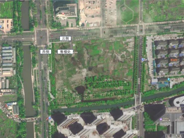 下面这张图,是从售楼处西侧马路对面看过去的景象。