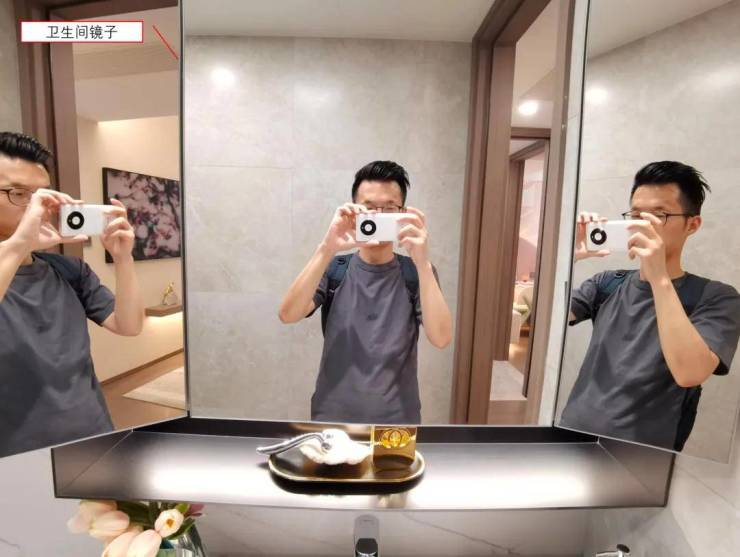 下面这张图是卫生间的镜子,哈哈哈哈,我个人特别喜欢。这里必须要感谢华为手机出色的广角拍照功能。