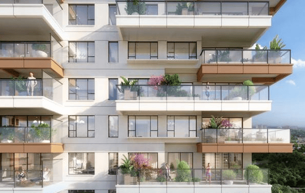 第四代住宅:采用“垂直生态”设计,户户配备空中庭院(约9㎡),实现270°景观视野,得房率近100%