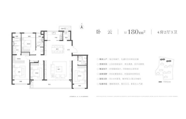 180㎡四房两厅三卫:LDKB一体化设计,主卧独立衣帽间,约8米面宽,双套房+多功能房,总价区间800-820万