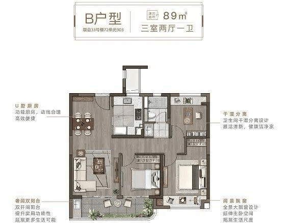 (山河九里建面约89㎡户型图)