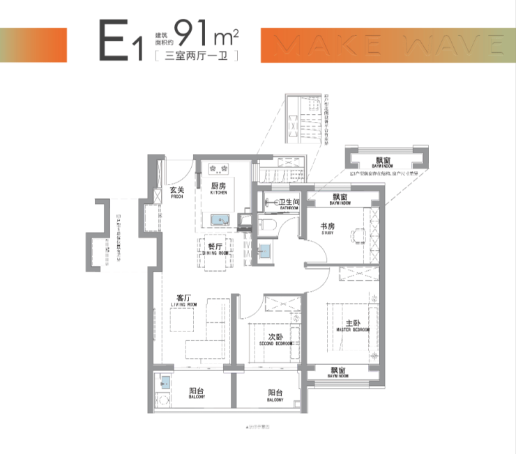 前期少量建面约91-99m²3房
