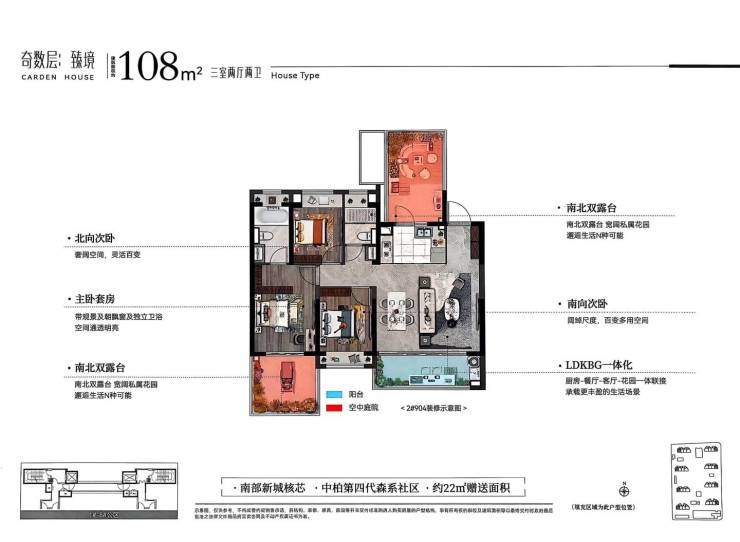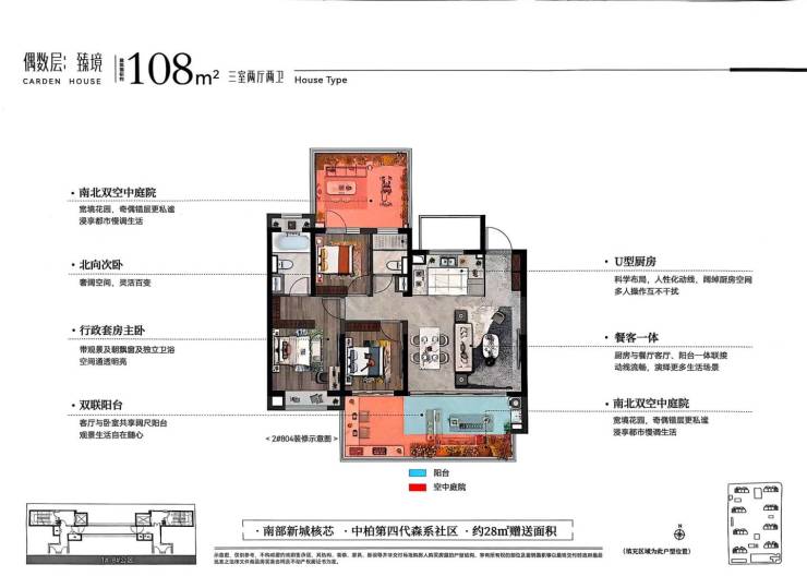 奇偶层错位庭院布局:奇数层南向/270°转角,偶数层南北双庭院,实现"户户有花园"