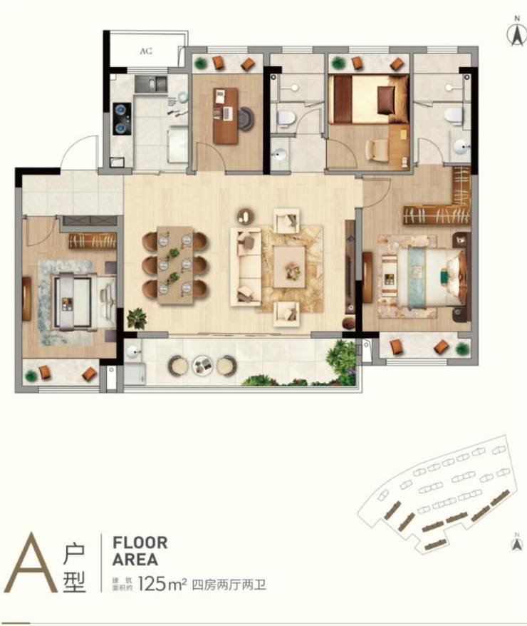 -【建面125㎡4居】价格在190.0-200.0万,分布于14#、1#、5#、9#等楼栋,1梯2户,层高3.00米,总楼层10F,户型设计合理,空间宽敞,满足家庭居住需求。
