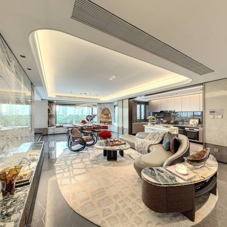 精装标准:公共区域采用葡萄牙米黄石材,标配大金中央空调+威能地暖双系统