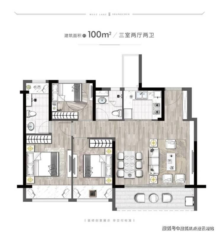 户型面积:100-165㎡,涵盖三室两厅两卫、四室两厅两卫、四室两厅三卫、五室两厅三卫等多种户型。
