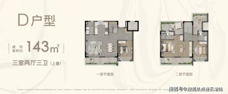 D户型(143平上叠):348-388万 三开间