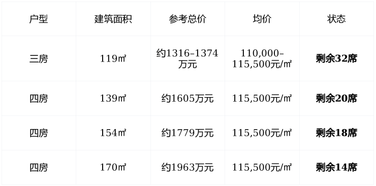 剩余房源 : 总计84席 , 为2026年最新批次 , “买一套少一套”进入尾盘冲刺 ;