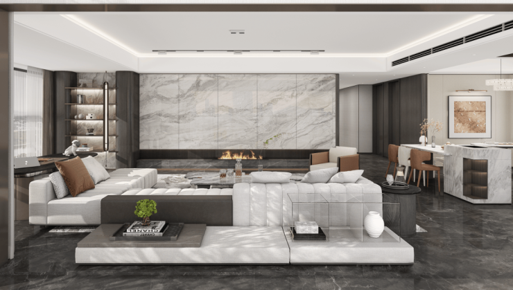 美学建筑:外立面采用铝板一体板+真石漆复合工艺,专属电梯私厅(最大13㎡)搭配双入户悬浮吊顶大堂。