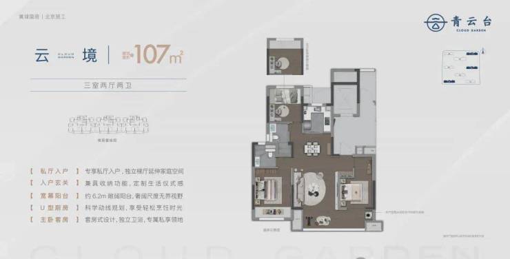 107㎡三室两厅两卫:三开间朝南,6.2米阳台,总价约155万-190万(部分特惠房源总价约100万起)
