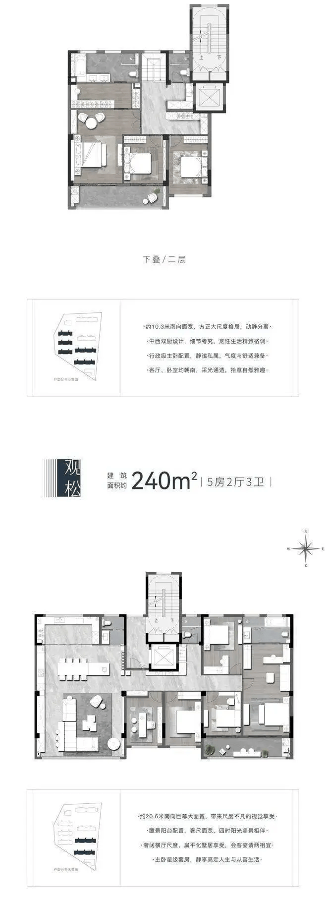 产品类型:涵盖叠墅、大平层、小高层于一体,主力户型建面约165–256㎡,满足高端改善家庭对空间尺度与功能布局的高阶需求 。