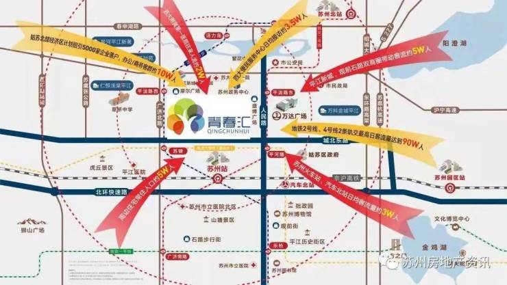 在苏州市的心脏地带,有一个名为亿博青春汇的项目,其地址位于人民路旁,与广济北路、城北东路东环快速路等城市主要道路相连,地理位置优越,交通极为便利。苏州火车站和汽车北站近在咫尺,无论是铁路还是公路交通,都为该项目提供了极大的便利。