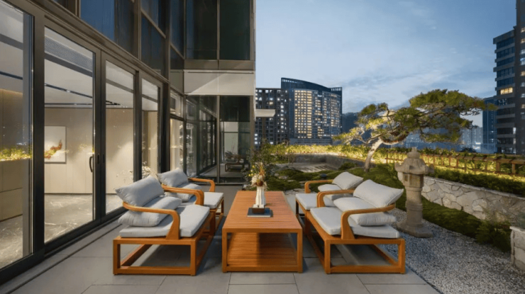 所有户型均为边套设计,配备270°环幕落地窗,三面采光总长近54米,如同IMAX巨幕直面钱塘江景 。高层户型可俯瞰江河双景,部分顶层房源更配有60㎡空中花园或星空露台,私密性与景观性兼具 。