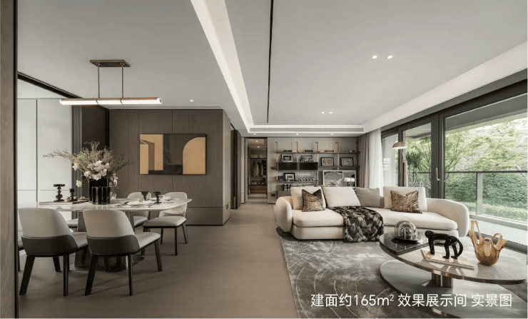 165㎡三室两厅两卫:总价约590万至680万元,单价区间在35,800元/㎡至41,200元/㎡之间。该户型采用横厅设计,主卧套房搭配独立衣帽间,非常适合三代同堂的家庭居住。