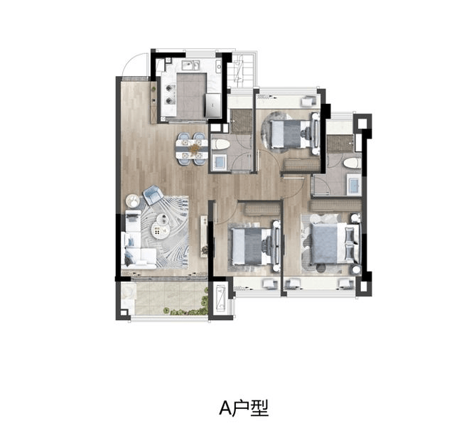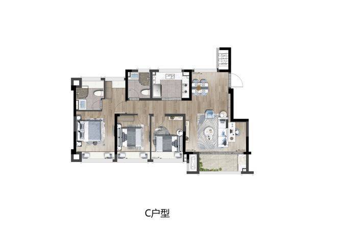 100㎡三房两卫:南北通透全明格局,满足二孩家庭需求