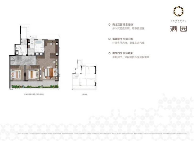 旭辉满园为容积率1.05的纯墅区,由10幢3F联排,5幢6F叠加组成,仅约102套房源,属于主城十分罕见的纯别墅盘。
