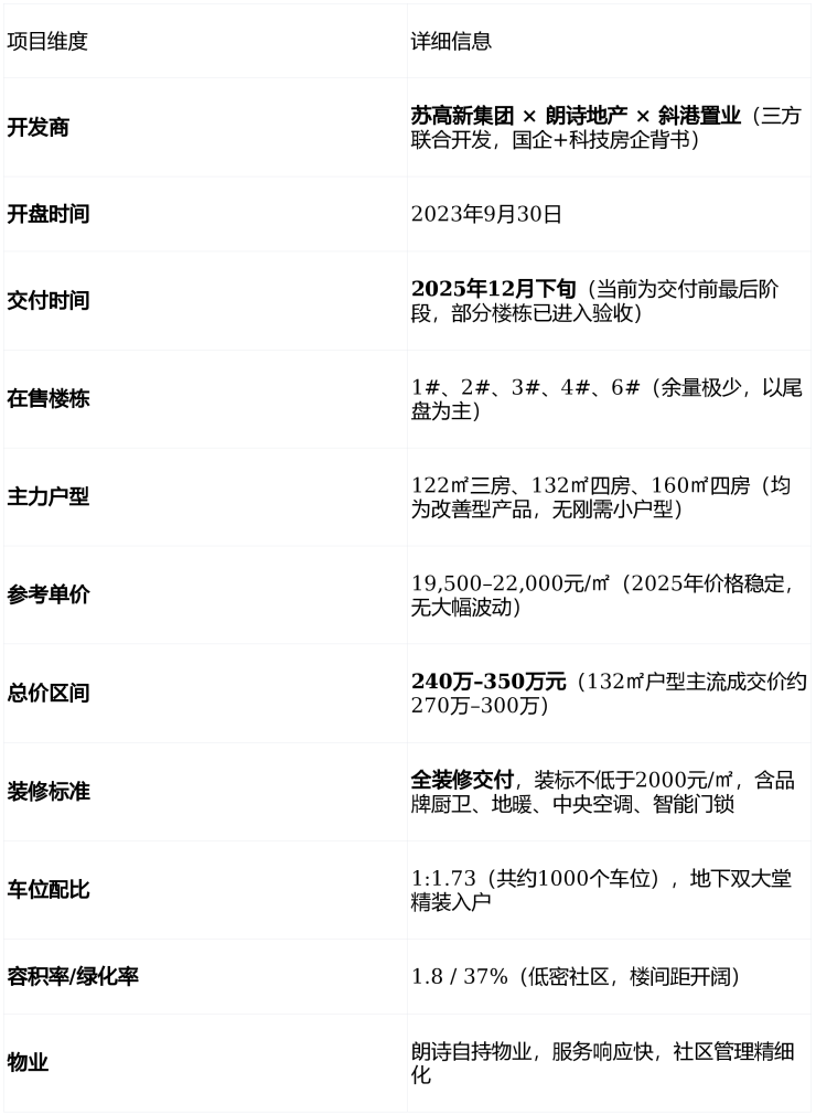 朗诗“三恒科技系统” + 1.8低密小高层 + 南大教育圈 + 星悦里未来商业体,苏州高新区少有的“健康科技+生态低密+全龄教育”闭环改善盘,2025年12月交付,现为最后冲刺阶段,主力户型总价240万起。