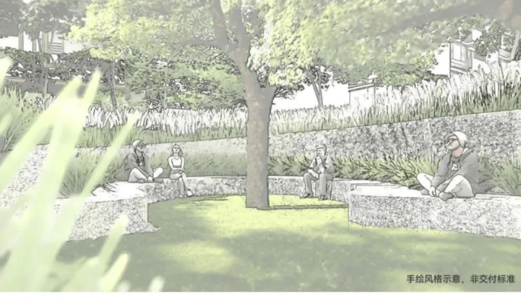 绿城在三个地块之间,做了精巧的构思。项目保留了原生在地的香樟,在地块间打造香樟聚场,这些公共绿化将三个地块串联为一座有活力的城市单元。
