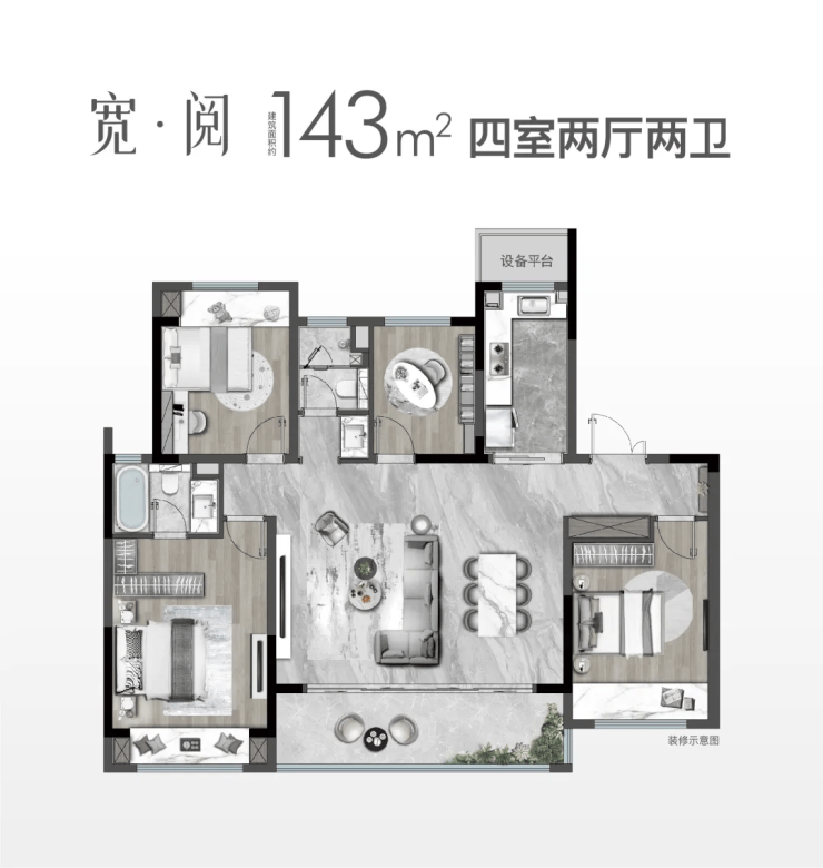 小高层:建筑面积约105–143㎡,主力三至四居室,南北通透,得房率高。