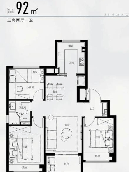 92㎡三房两厅一卫:全明格局,适合刚需上车或年轻家庭,总价约570-620万