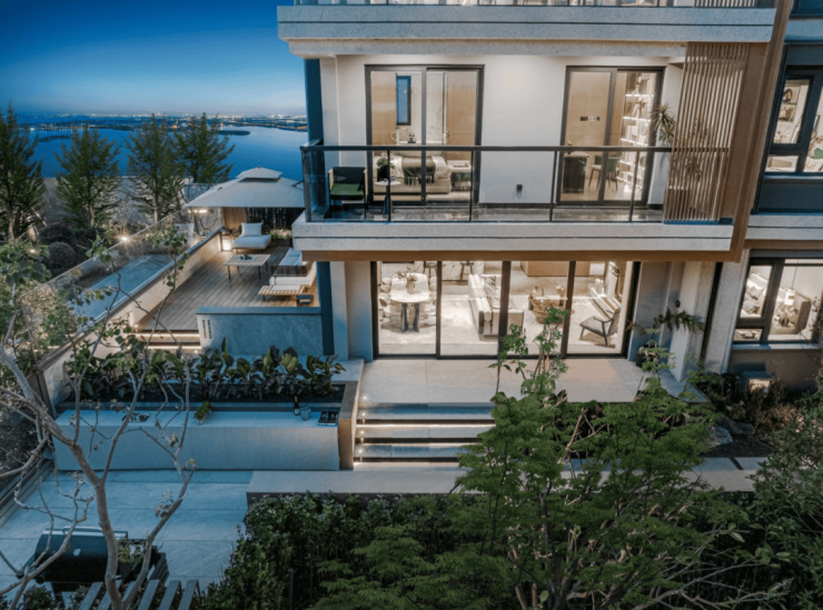 开发商龙湖集团为世界500强企业,该项目由苏州湖泽置业有限公司开发,物业由龙湖智创生活(国家一级资质)负责,物业费2.94元/㎡/月。项目采用现代度假风格与江南水乡元素融合的建筑设计,外立面采用木色格栅与米白色真石漆组合,大面宽玻璃窗设计最大化引入湖景