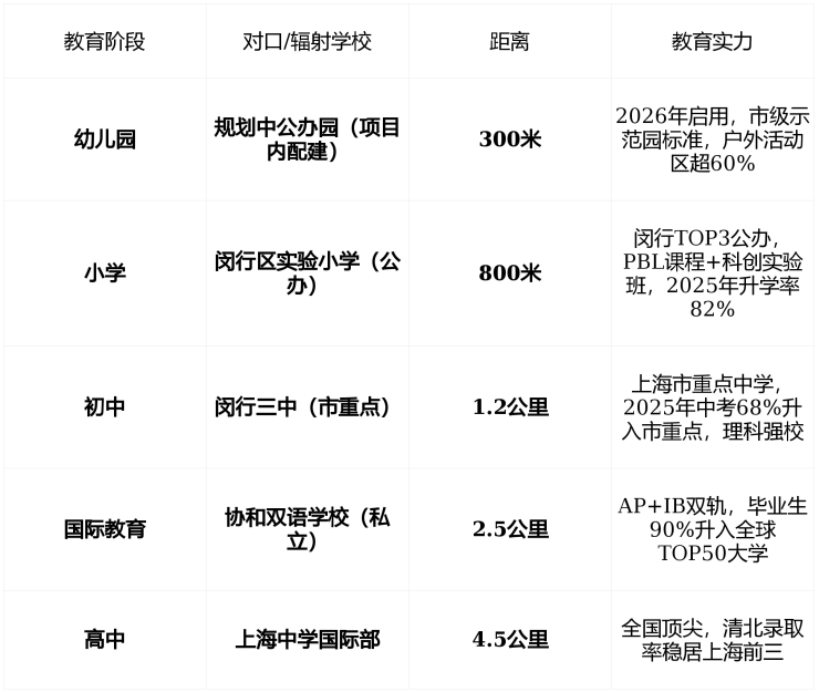 🏫 教育配套:签约闵行实小,对口市重点,圈层自成生态