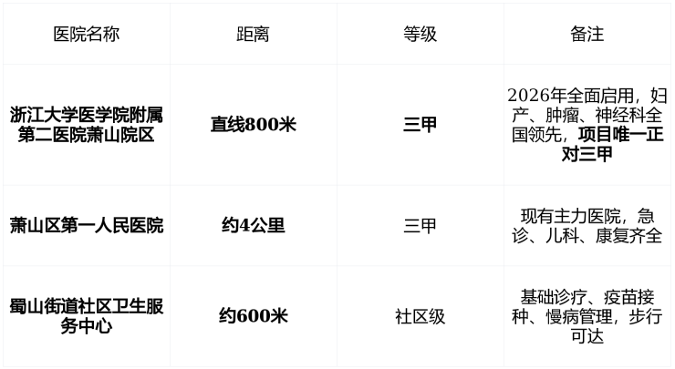 💡 医疗优势 : 三甲医院就在楼下 ,孕产、体检、慢性病管理, 无需远行 ,是家庭健康最硬的保障。