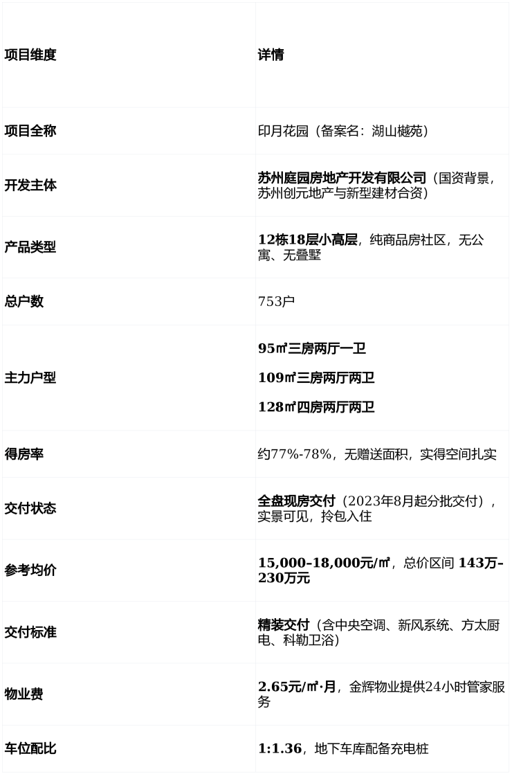 💡 现状解读 :印月花园的核心优势是“所见即所得”。在期房盛行的市场下,现房交付彻底规避了交付风险,社区实景、园林、楼间距、精装品质均可实地查验,尤其适合首次置业的刚需家庭——买房不再“开盲盒”,安全感拉满。