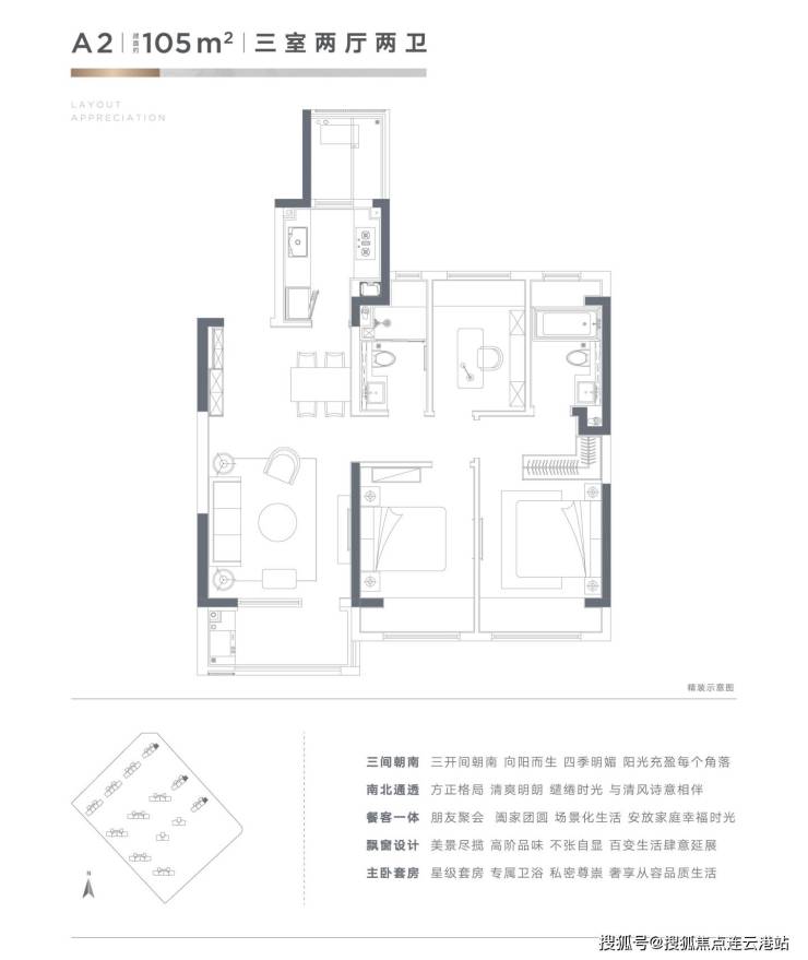 主推 105㎡舒适 3 居与 135㎡阔绰 4 居,分布于不同楼栋,满足多元居住需求。105㎡户型 1 梯 2 户,层高 3 米,总楼层 26F;135㎡户型 1 梯 1 户,层高 3 米,总楼层 17F。方正格局,南北通透,充分考量居住舒适度与空间利用率。