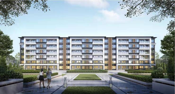 外立面:采用石材与真石漆相搭配,米白结合深灰色局部点缀香槟金,彰显高端品质
