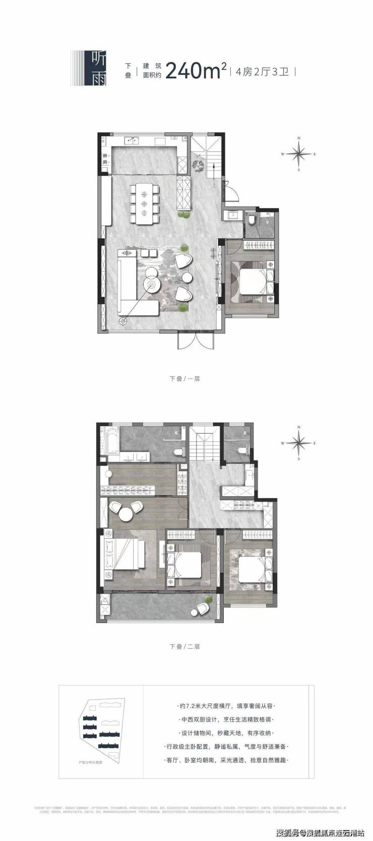 下叠:建面约240㎡(5房,双层动静分区)