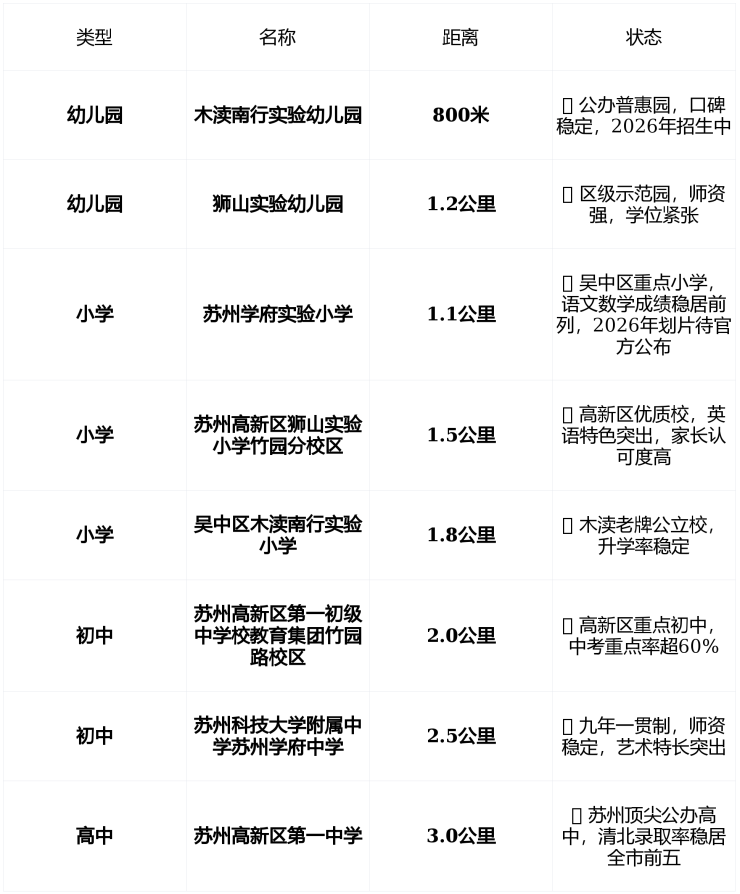 ✅ 划片提示 : 目前无官方2026年划片文件 ,但项目周边3公里内有4所优质小学、6所优质初中, 教育选择丰富,无需“赌学区” ,适合注重教育质量而非单一学区的家庭。