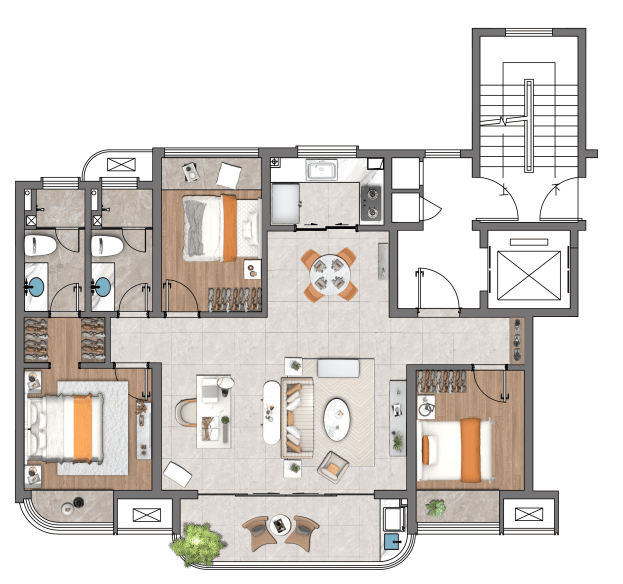 3.【向阳】约9.4米三开间朝南,家庭社交与自我休憩兼顾,兼容多重生活场景;