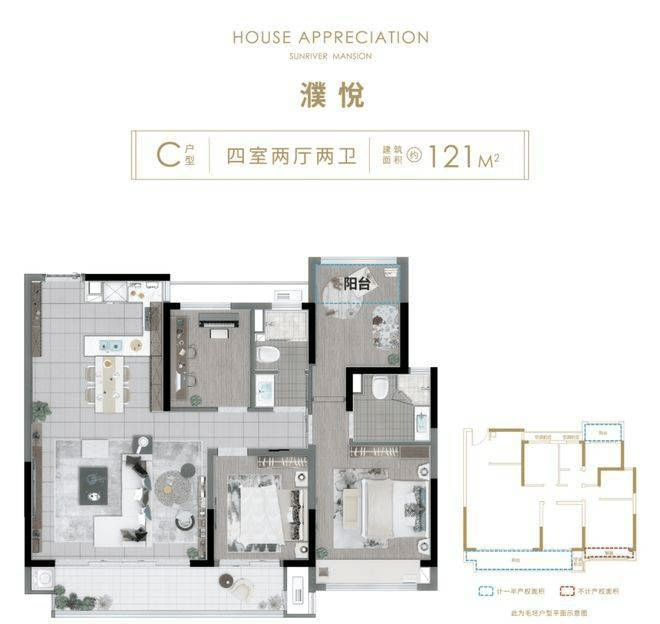 121㎡4房2厅2卫:约5.2米宽厅,独立书房,私密性佳