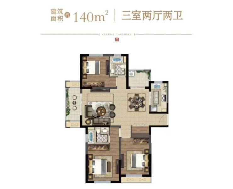 轩阔三房,舒朗空间,尊享平墅生活;南向双厅相连,阔尺面宽,优化空间利用;典雅主卧,奢配主卫,衣帽间及书房,尊享精致起居;南北阔景双阳台,兼顾生活日常,揽胜四季美景;
