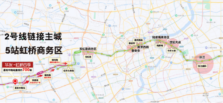 这条线路的能级超乎想象:往东2站是天空万科广场,3站是网红打卡点蟠龙天地,5站直达虹桥枢纽,无缝换乘2号线、10号线,直抵静安寺、陆家嘴、人民广场。