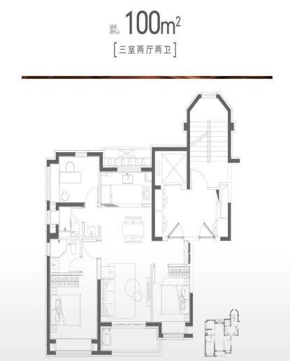 (建面约100㎡户型示意图,以实际交付为准)